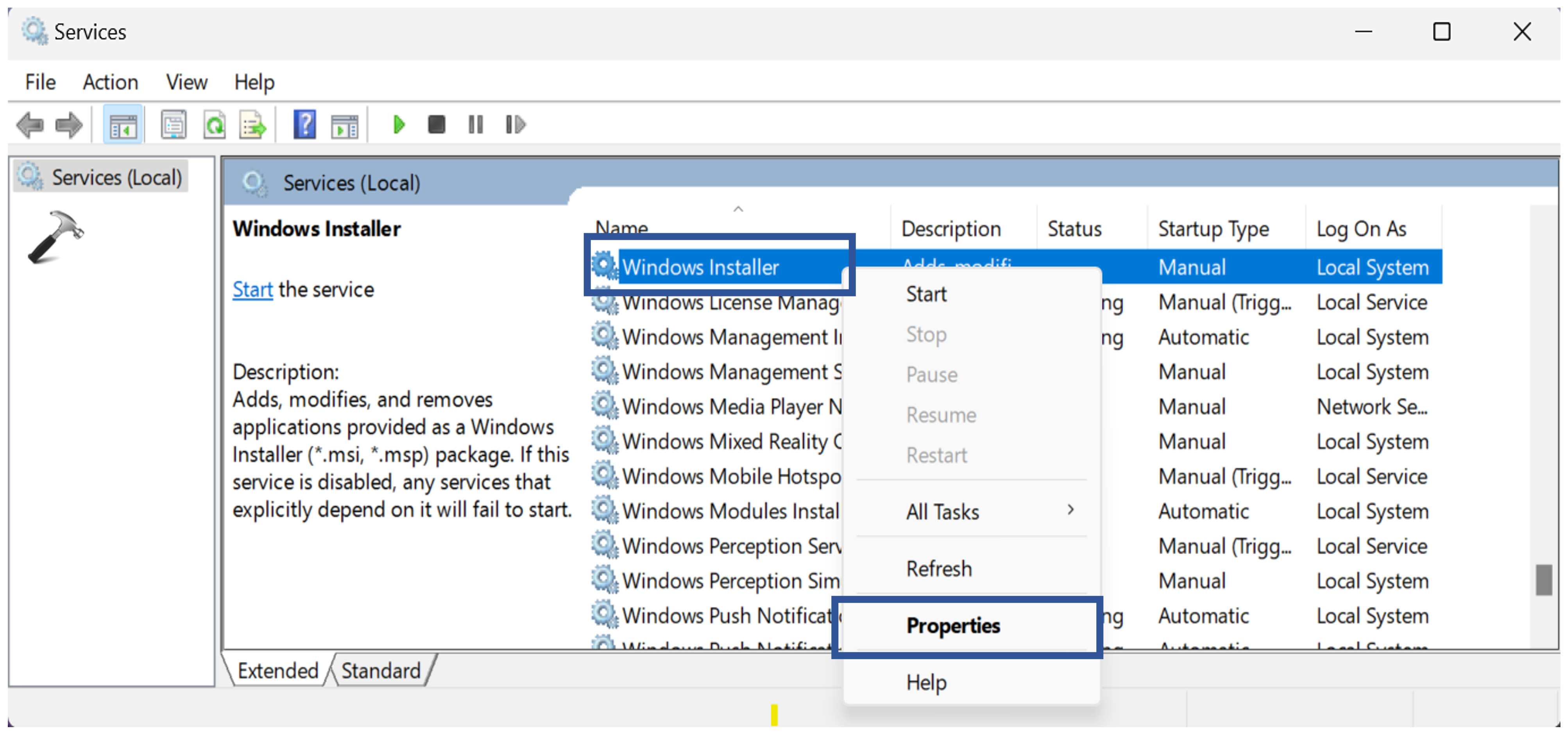- “Інсталятор Windows або msiserver” встановіть значення Вручну.