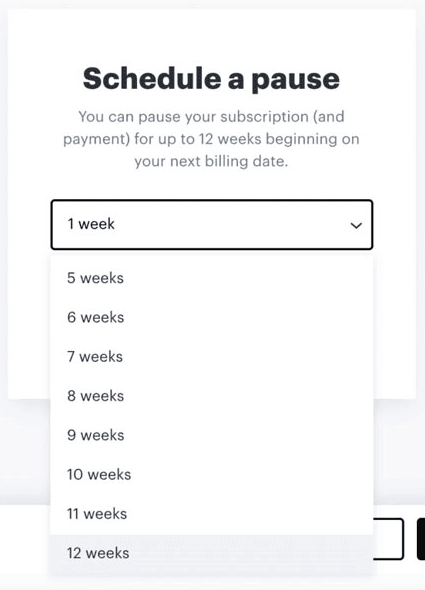 5. Ви можете встановити, на який час ви хочете призупинити свою підписку на Hulu, від 1 до 12 тижнів.
