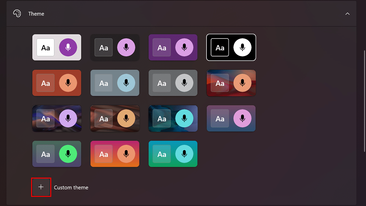 - під «Тема», натисніть значокCustom Темакнопку.