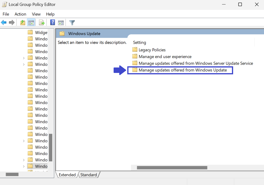Конфігурація комп’ютера Адміністративні шаблони Компоненти Windows Оновлення Windows Керування оновленнями, які пропонуються з оновлень Windows
