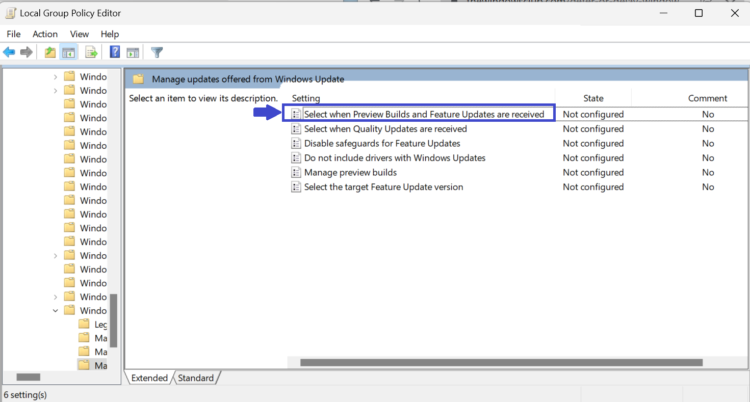 3: Двічі клацніть «Вибрати, коли отримано попередні збірки та оновлення функцій».