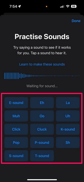 Всього доступно 14 різних звуків у Sound Actions на iPhone в iOS 18. До них належать клацання, клацання, поп, ну, мух, ля, е, е, к, т тощо.