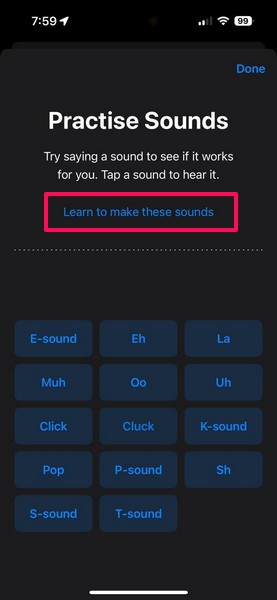 5.Якщо вам важко вимовити будь-який із звуків, торкнітьсяНавчіться вимовляти ці звуки кнопкана вершині.