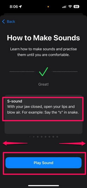 6.На наступній сторінці ви можетепрокрутіть, щоб переглянути всі звукиіотримати індивідуальні описияк видавати ці звуки. Ви також можете торкнутисяКнопка відтворення звукунижче, щоб відтворити зразок поточного звуку.