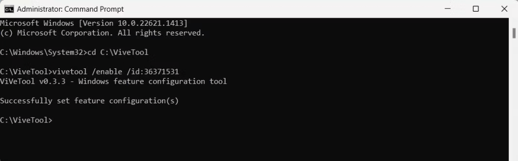 Крок 8:Ви отримаєте повідомлення «Успішно встановлено конфігурацію функцій». Перезавантажте ПК.