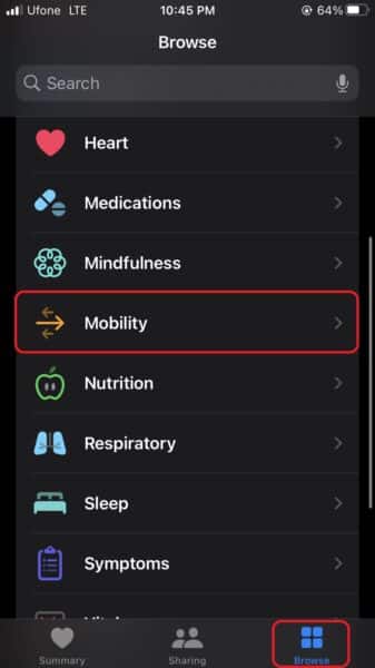 - У межахпереглядатирозділ, ви знайдетеМобільність. Натисніть на нього.