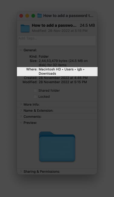 У macOS процедура отримання інформації відображає шлях до файлу лише за два клацання. Перегляньте наведені нижче дії.