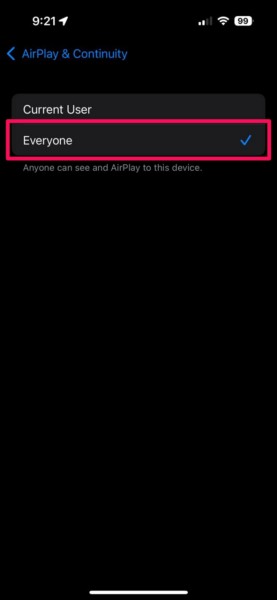 5.Тепер торкнітьсяДозволити AirPlay дляваріант.