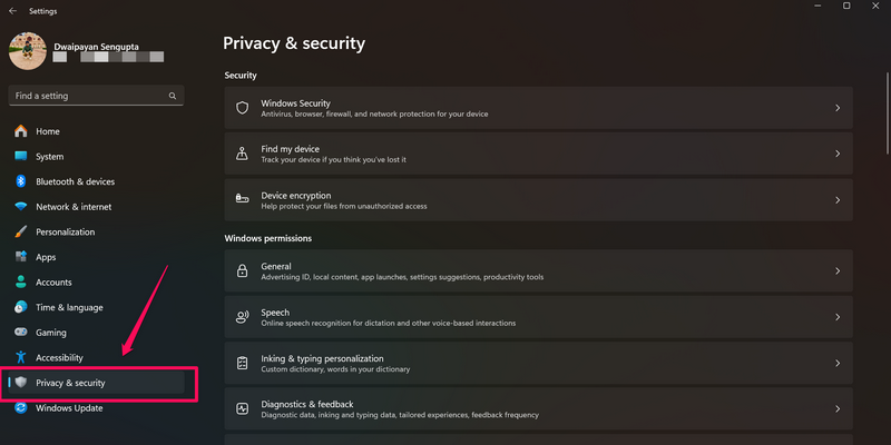 2.Перейти доКонфіденційність і безпекана лівій панелі навігації.