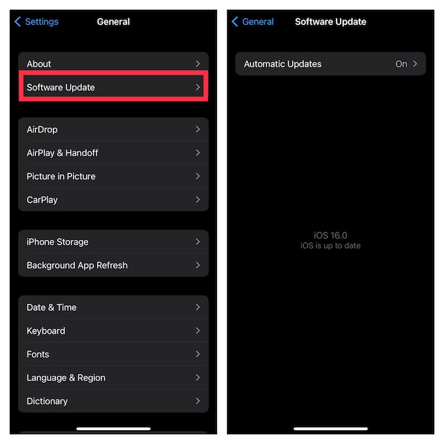 - На вашому iPhone:Перейдіть до програми Налаштування -> Загальні -> Оновлення ПЗ. Потім завантажте та встановіть останню версію iOS, як зазвичай.