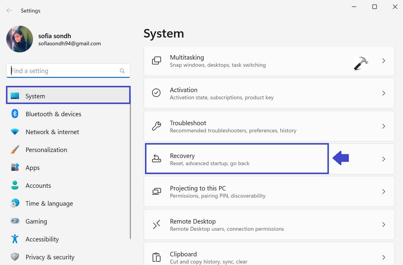 1. Перейдіть до «Налаштування => Система => Відновлення“.