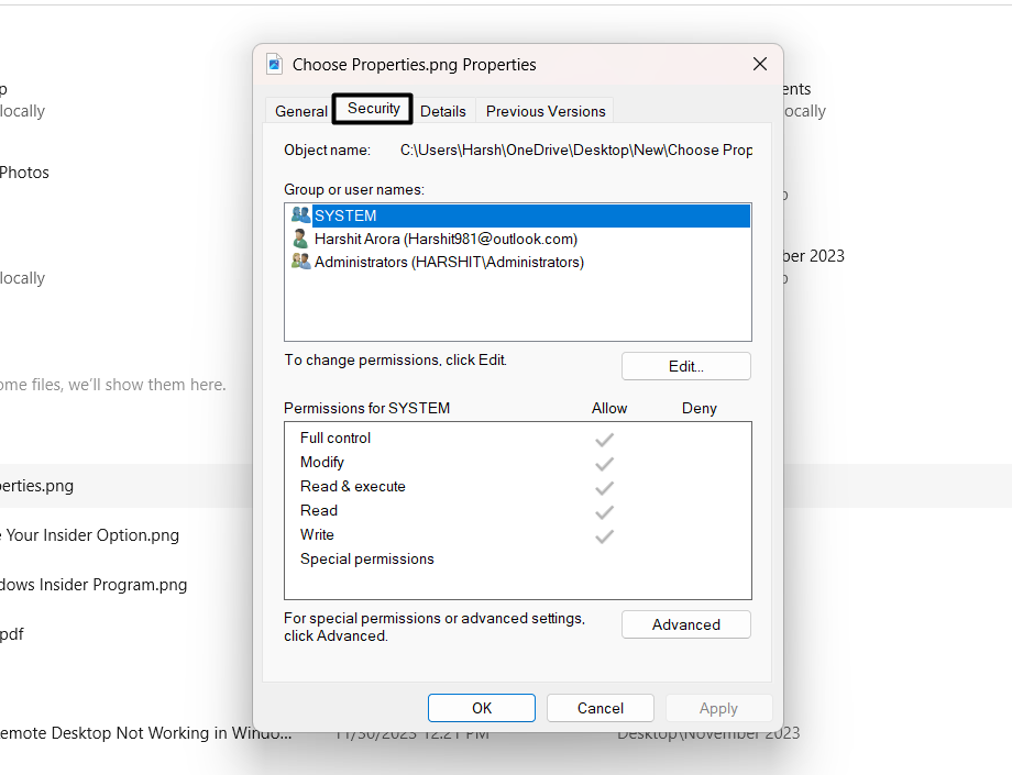 3.вБезпекавкладку, натиснітьРедагувати…, позначте всі галочки підДозволити, і натисніть кнопкудобрекнопку.