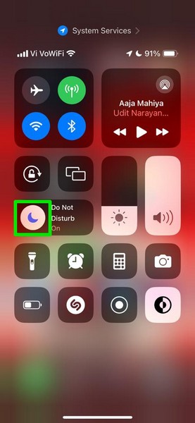 3. Торкніться піктограми півмісяцядовимкнути фокус «Не турбувати».на вашому iPhone негайно.