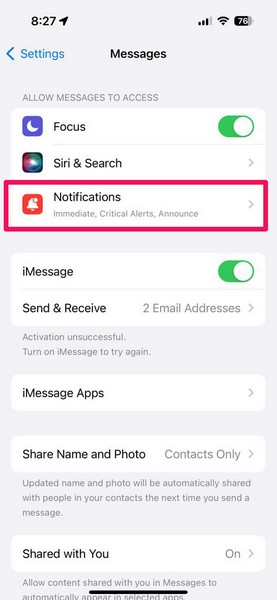 4. Перевірте налаштування сповіщень iMessage на вашому iPhone