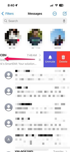 Тепер, якщо ви виявите, що не отримуєте сповіщень iMessage навіть після їх увімкнення, вам слід перевірити окремі потоки iMessage, щоб визначити, чи вимкнено їх звук. Якщо на вашому пристрої вимкнено певний чат, ви не отримуватимете жодних текстових сповіщень iMessage для них.