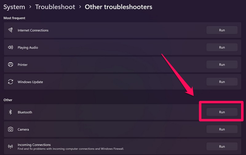 6. Запустіть засіб усунення несправностей Bluetooth у Windows 11