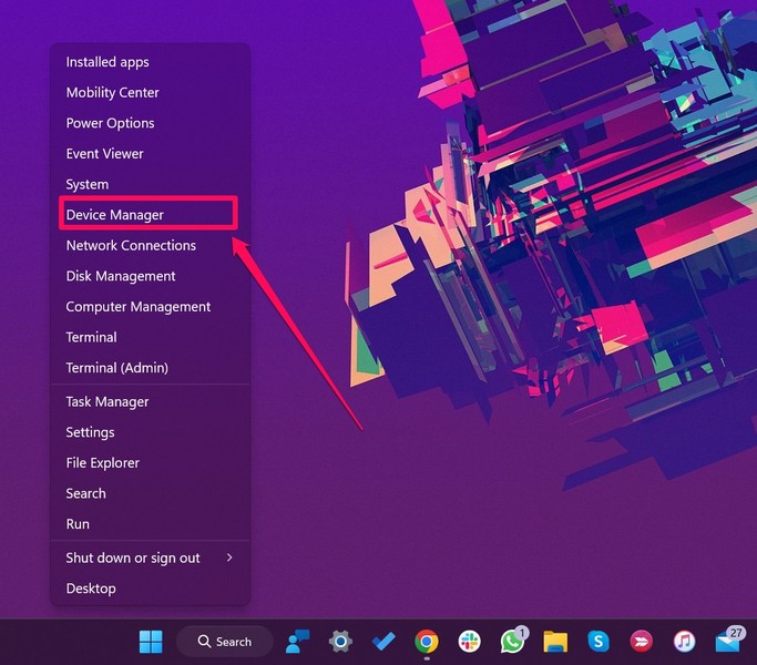 2.Натисніть наДиспетчер пристроївпараметр у наведеному нижче списку.