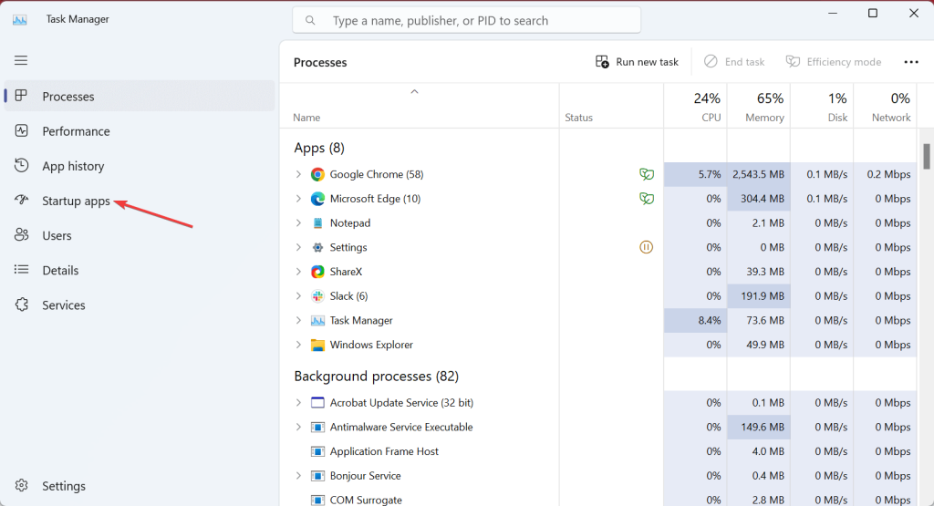 Крок 1: ВідкрийтеДиспетчер задачнатисканнямCtrl + Shift + Escі натисніть наЗапусквкладка.