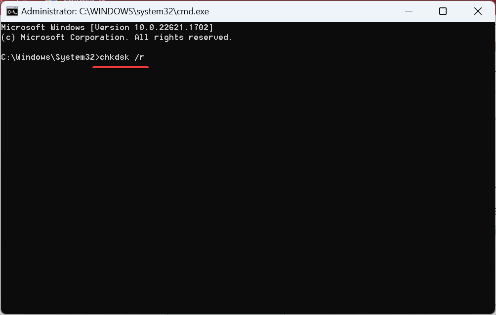 Крок 6:Тепер введітьвимкнення /рі ваш ПК перезавантажиться, і інструмент автоматично запуститься та виправить проблеми з диском.