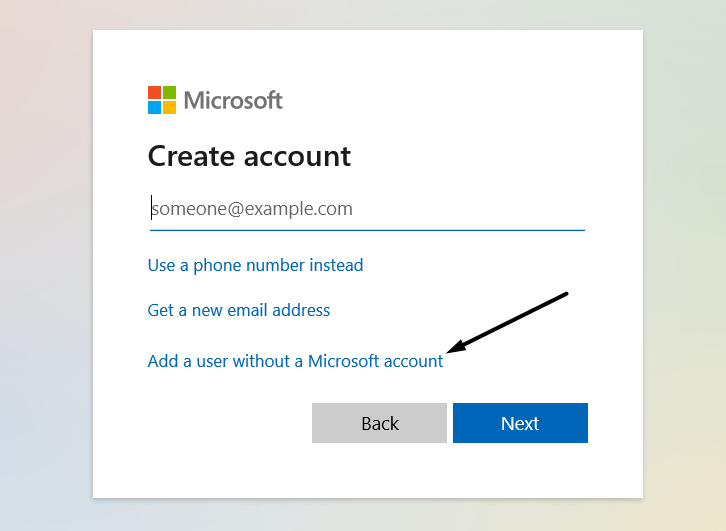 4.ВиберітьДодайте користувача без облікового запису Microsoftа потім введіть ім’я та пароль у відповідні поля.