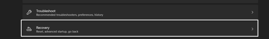 1.ВідкрийтеДодаток налаштуваньвикористовуючиWindows + Iярлик і перейдіть доВідновленнярозділ.