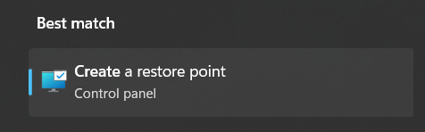 1.ВідкрийтеВікно пошуку Windows, видСтворіть точку відновленняі натиснітьВведітьключ.