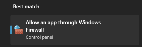 1.ВикористовуйтеWindows + Sярлик, щоб відкрити вікно пошуку, введітьДозволити програмі через брандмауер Windowsі натиснітьВведіть.