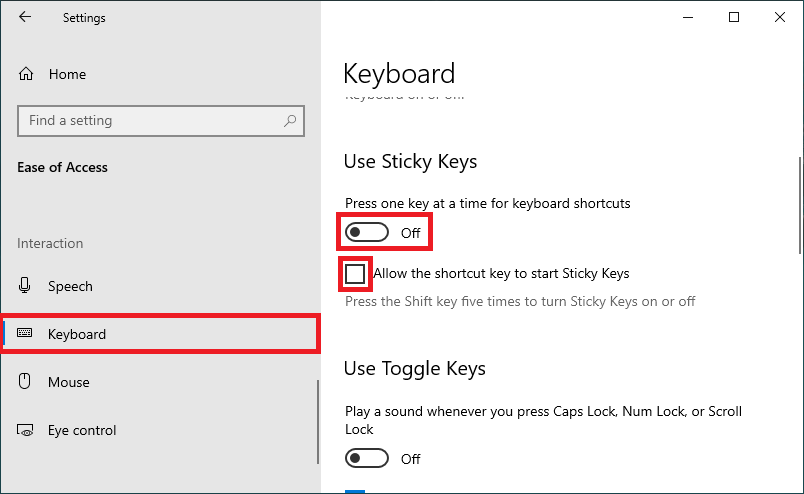 Крок 4.Тепер натисніть наКлейкі ключіівимкніть усі параметриви бачите на своєму екрані.