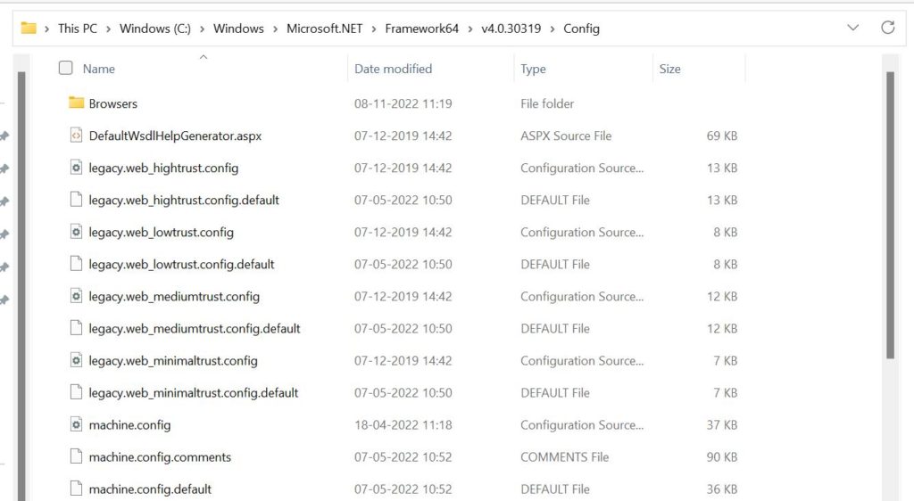C:WindowsMicrosoft.NETFramework64v4.0.30319Config