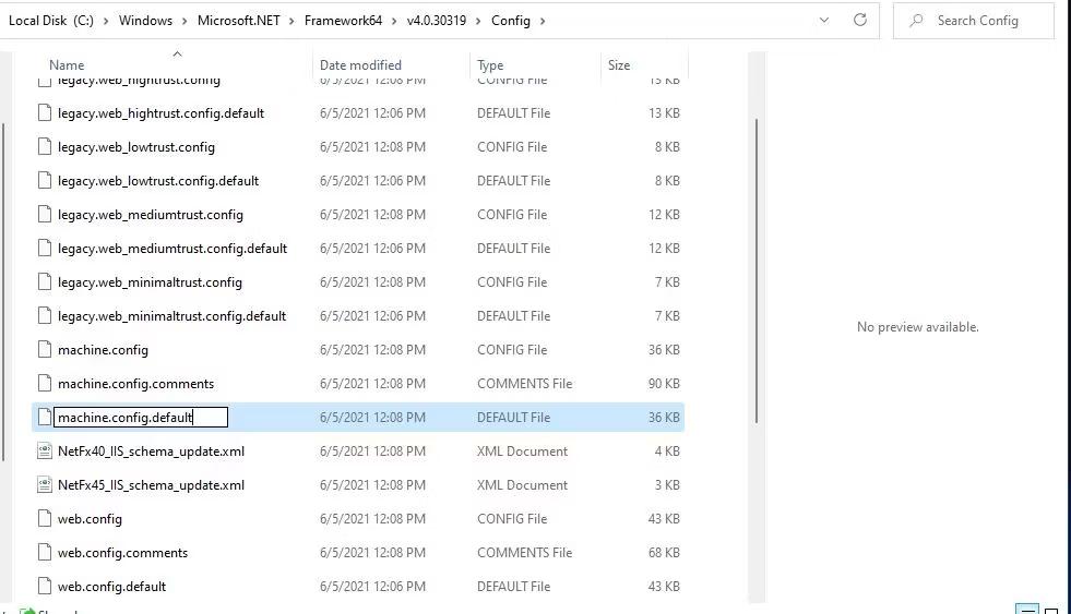 крок 4:Потім клацніть правою кнопкою мишімашина. config.за замовчуваннямфайл і виберіть у контекстному меню «Перейменувати».