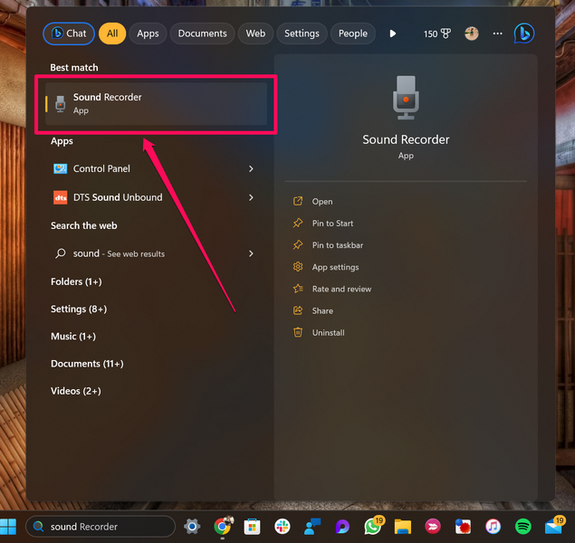 Пам’ятаючи про це, виконайте наведені нижче дії, щоб скинути налаштування програми «Звукозапис» на комп’ютері чи ноутбуці з Windows 11: