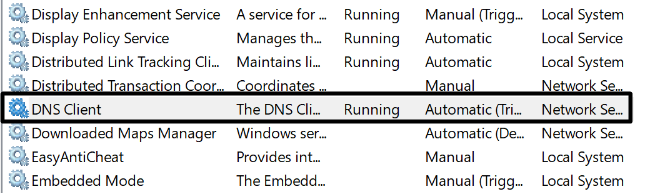 2.Відкривши вкладку «Служби», знайдітьDNS-клієнті двічі торкніться її, щоб відкритиВластивостірозділ.