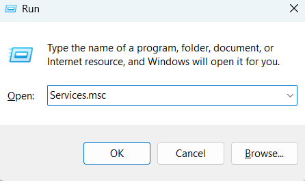 1.Для початку відкрийтеЗапустити діалогове вікнона ПК з Windows 11 і введітьservices.mscу вікні пошуку діалогового вікна «Виконати».