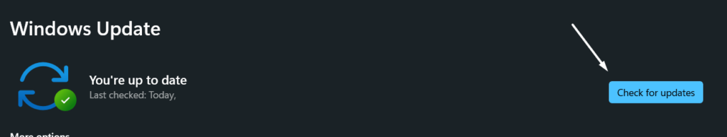 2.вWindows Updateрозділ, натисніть наПеревірте наявність оновленьщоб наказати ОС сканувати нові незавершені оновлення.