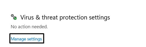 2.Далі натисніть наЗахист від вірусів і загрозвНайкращий матчрозділ і натисніть наКерувати налаштуваннямипідПараметри захисту від вірусів і загрозрозділ.