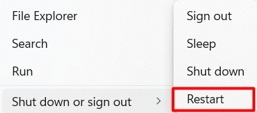 Одним із найпоширеніших рішень для вирішення цієї проблеми є перезавантаження системи. У більшості випадків перезавантаження системи негайно вирішує проблему. Ви можете спробувати перезавантажити ПК з Windows 11, щоб перевірити, чи проблеми вирішено.