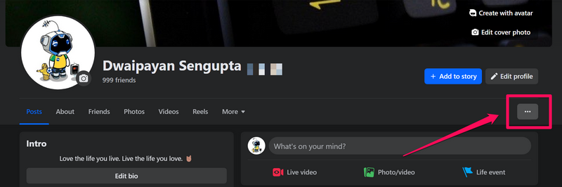 4. Натисніть кнопку з трьома крапкамипід кнопкою Редагувати профіль.