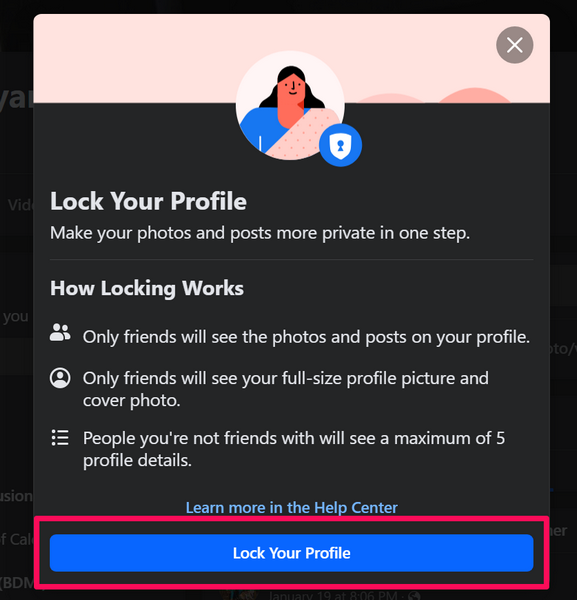 Однак Facebook офіційно називає це не «приватним профілем», а «заблокованим профілем». Отже, технічно кажучи, ви можете «заблокувати» свій профіль у Facebook, щоб зробити його приватним і заборонити незнайомцям переглядати його на соціальній платформі.