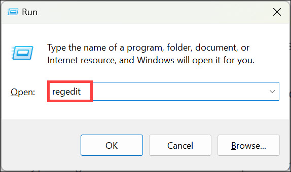2.Введіть "regedit” у текстовому полі та натиснітьВведітьщоб відкрити редактор реєстру.