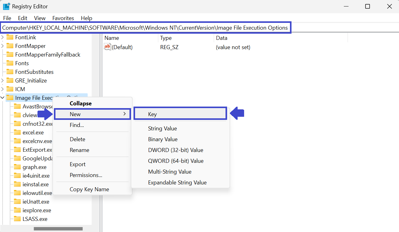 ComputerHKEY_LOCAL_MACHINESOFTWAREMicrosoftWindows NTCurrentVersionImage File Execution Options