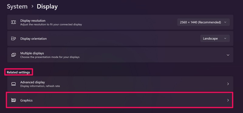 3.На наступній сторінці прокрутіть трохи вниз, щоб знайтиГрафікаваріант підПов'язані налаштуваннярозділ інатисніть на нього, щоб відкрити.