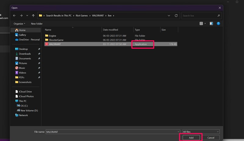 13.Для настільних програм відкриється нове вікно. Звідти ви можетезнайдіть файл .exeдля програми, яку ви хочете додати,виберіть йогоі натиснітьдодатикнопку.