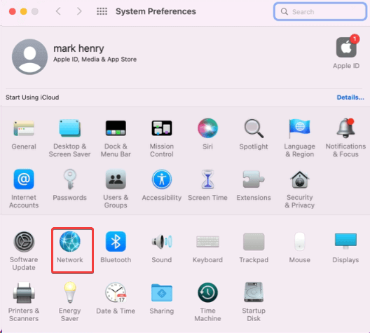 Крок 2 –КолиСистемні налаштуваннявідкрити, натиснутиМережа.