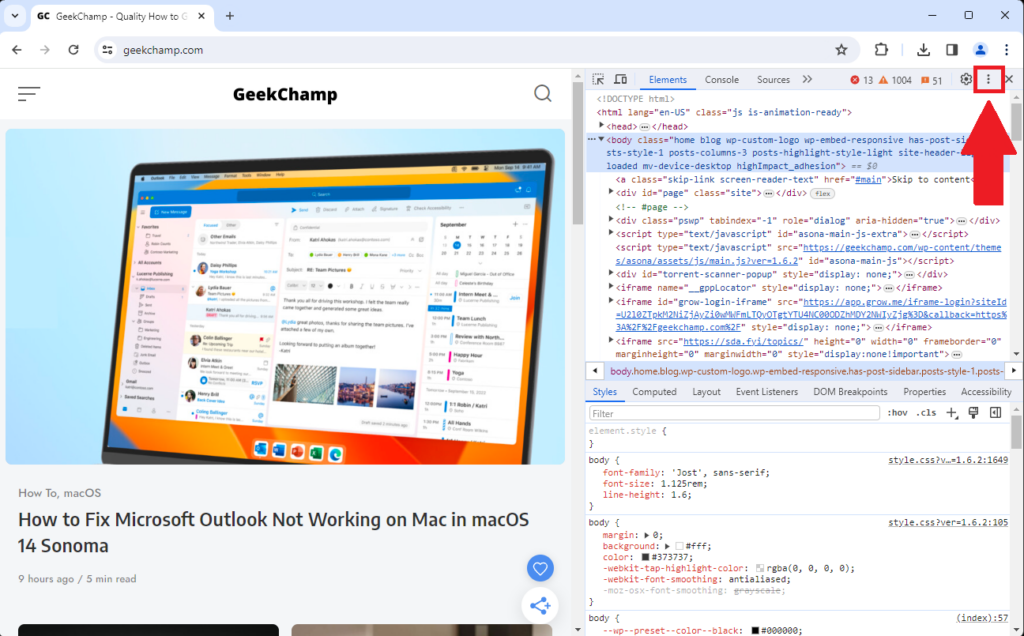 3.Натисніть наБільше інструментіві голова доІнструменти розробників. Ви також можете відкритиІнструменти розробниківнатиснувшиCtrl+Shift+яярлик.