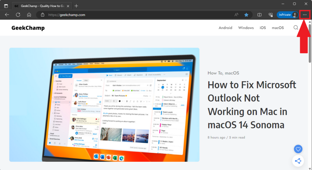 Edge — це браузер, який постачається разом із Windows 11. Він створений корпорацією Майкрософт і має багато функцій та інструментів для покращення взаємодії з користувачем, зокрема Bing Chat і Windows Co-pilot. Браузер зручний і простий у використанні, має низьке споживання ресурсів і оснащений інструментом повноекранного захоплення веб-сторінки. Виконайте наведені нижче дії, щоб зробити знімки екрана веб-сторінок із прокручуванням у браузері Microsoft Edge:
