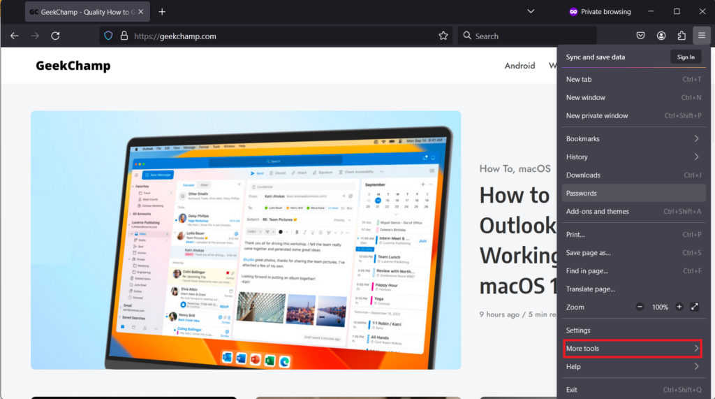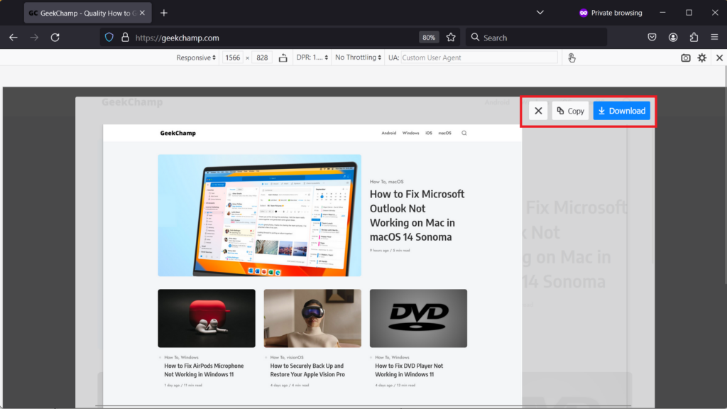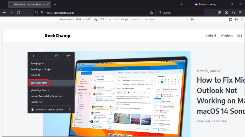 Браузер Mozilla Firefox досить відомий серед веб-розробників, оскільки пропонує кілька чудових інструментів для веб-розробки, зокрема інструмент для створення знімків екрана. Виконайте наведені нижче дії, щоб зробити знімки екрана з прокручуванням усієї веб-сторінки в браузері Mozilla Firefox: