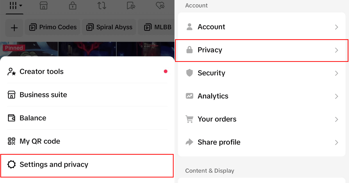 - Виберіть «Налаштування та конфіденційність» > натисніть «Конфіденційність».