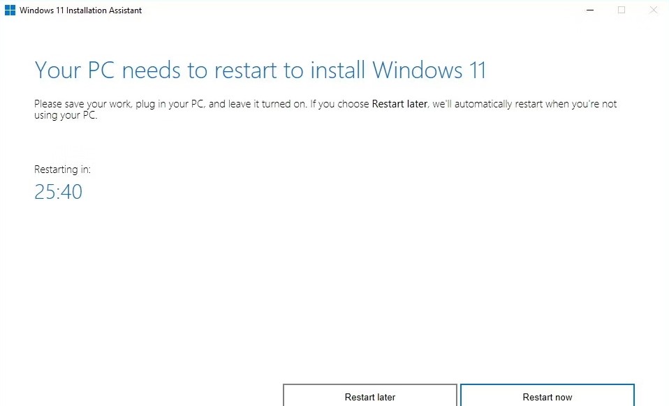 4.Після завантаження основного файлу Windows 11 натисніть наПерезапустіть заразкнопку для миттєвого встановлення Windows 11.