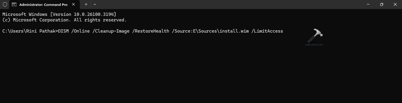 DISM /Online /Cleanup-Image /RestoreHealth /Source:ESourcesinstall.wim /LimitAccess