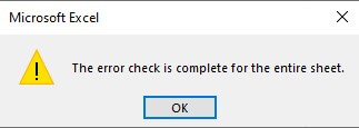 - Це відсканує весь аркуш, щоб знайти проблему у формулах. Якщо на аркуші немає проблем, ви побачите повідомлення про завершення перевірки помилок.